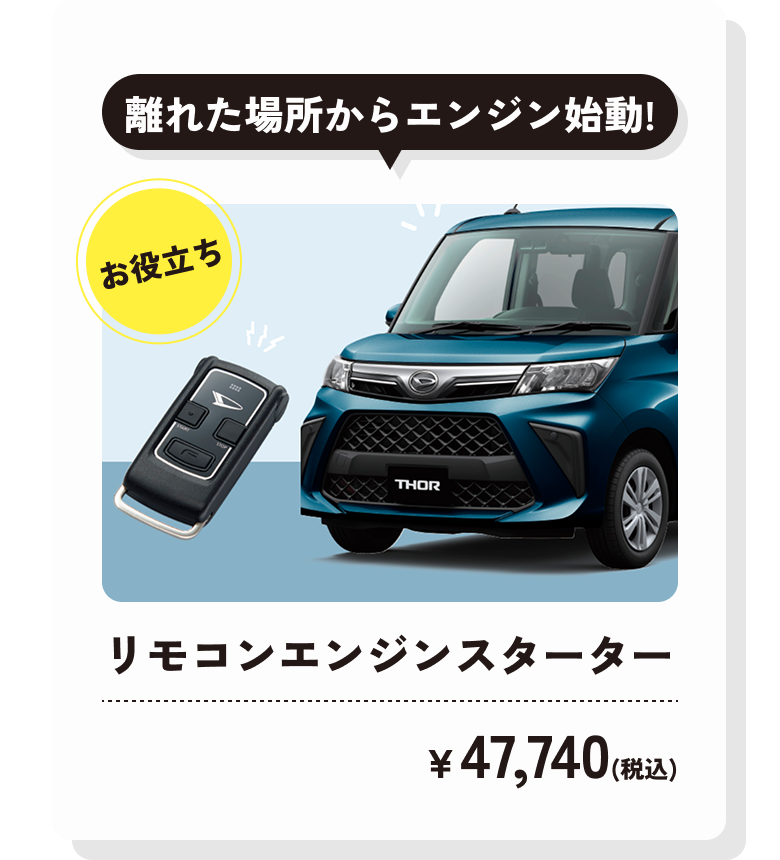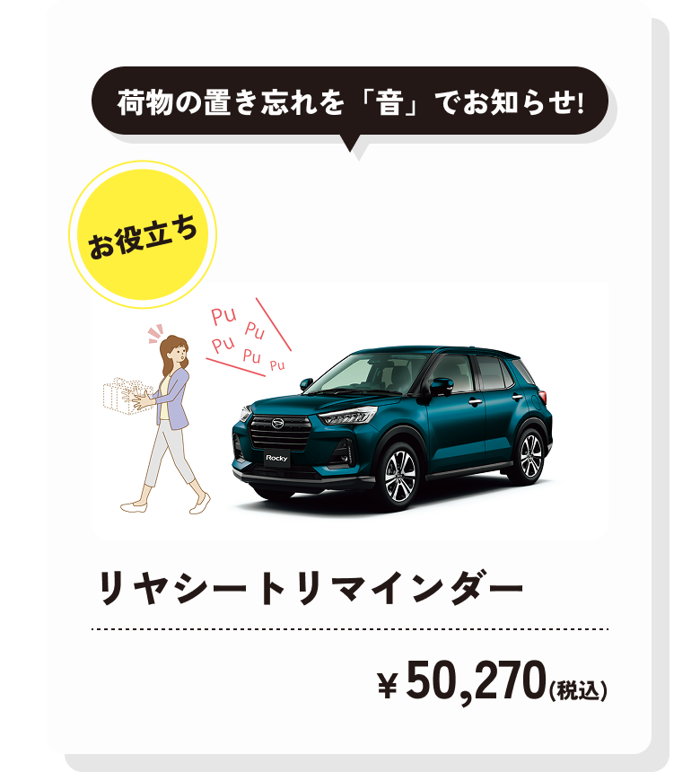 - 新車と同時にご注文いただいた用品の金額が110,000円(取付費・消費税込み)に満たない場合は対象外となります。